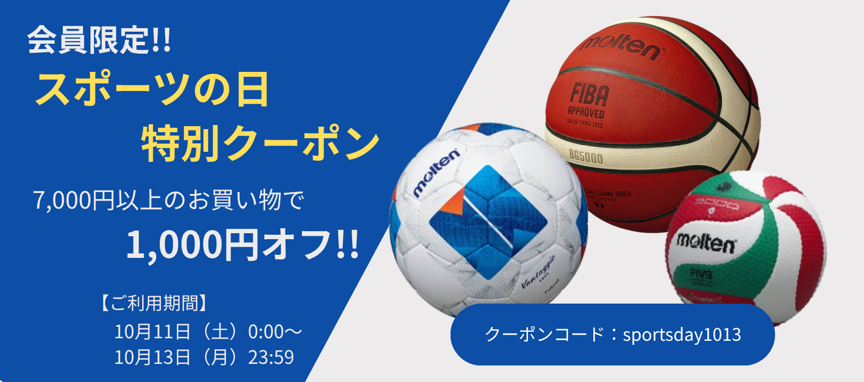 ※送料無料適用後の金額が7,000円(税込)以上の場合にご利用いただけます。 - クーポンコードは「sportsday1013」です。